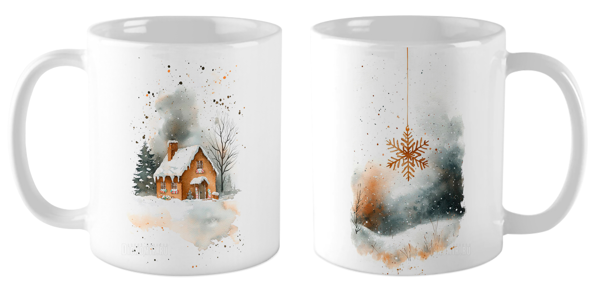 Кружка Новогодний домик в лесу / Акварель