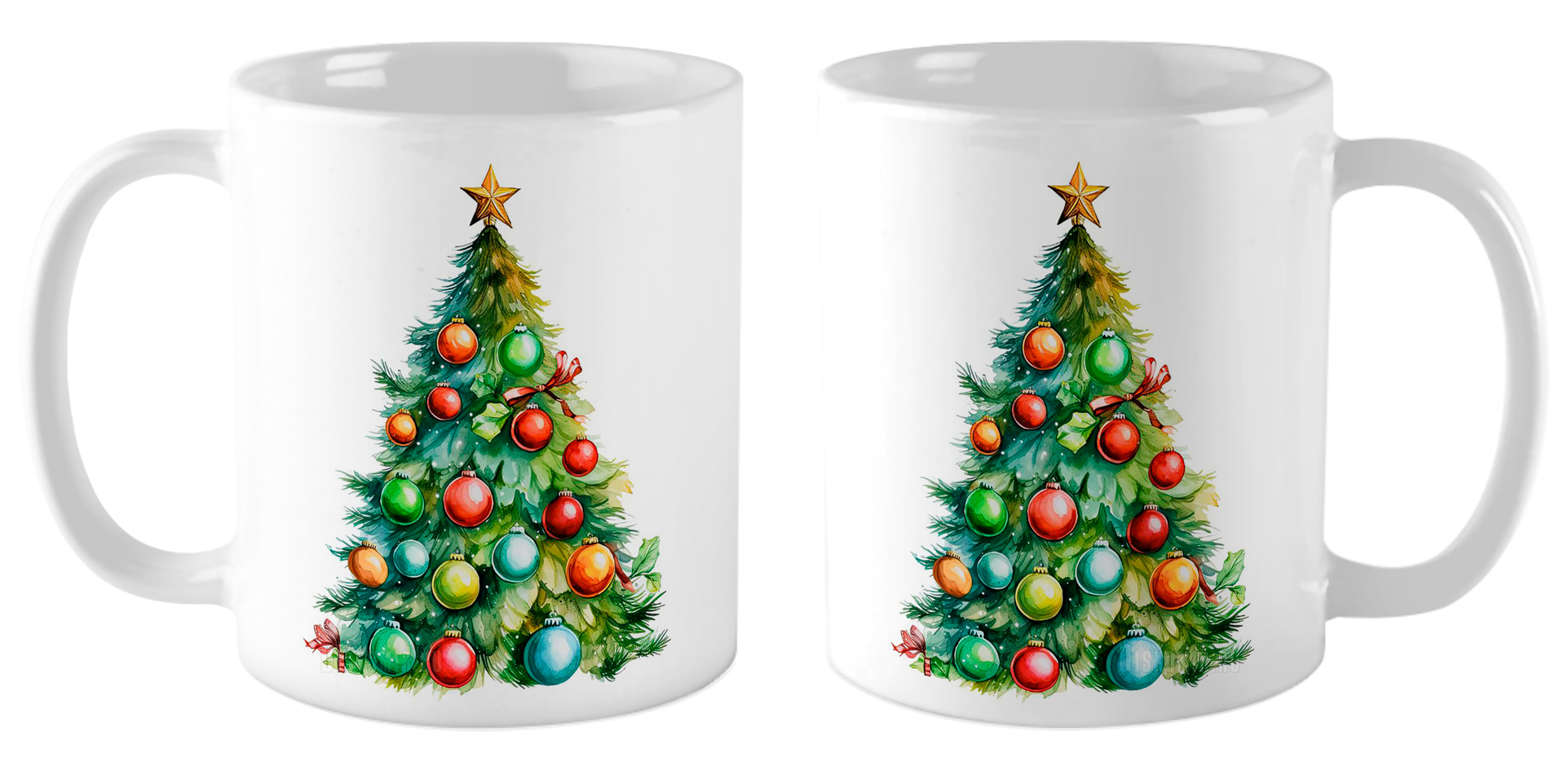 Кружка Новогодняя елка с игрушками / Акварель