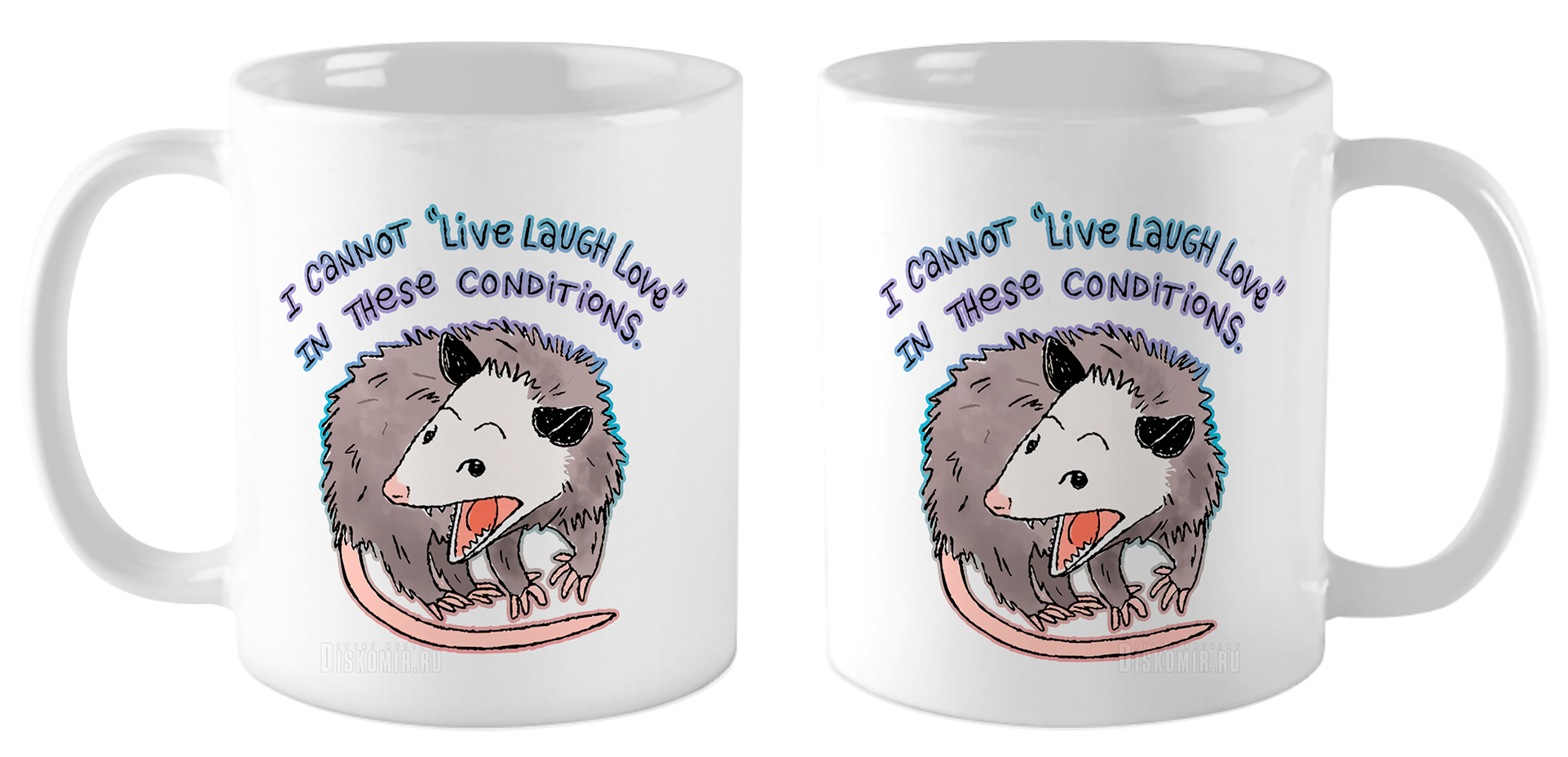 Кружка Опоссум / I cannot "Live Laugh Love" in these conditions / Я не могу "Жить Смеяться Любить" в таких условиях