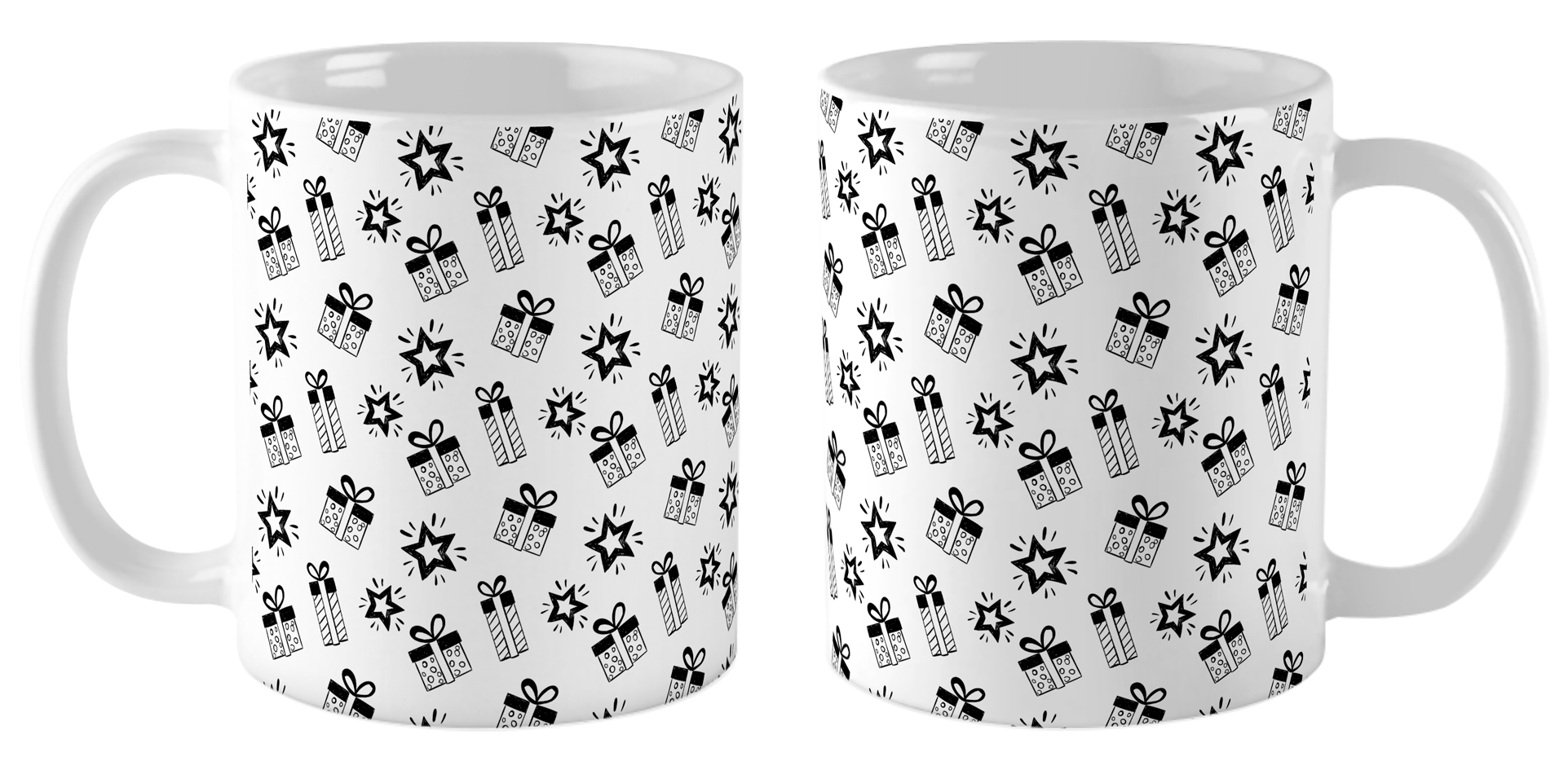 Кружка «Подарки и звезды» — это стильный аксессуар для вашего стола! Изготовленная из качественной белой керамики, она украшена монохромным паттерном с изображением подарков и звезд. Удобная классическая форма и гладкая поверхность обеспечивают комфортное использование, а стойкость печати гарантирует сохранение четкого рисунка после многократного мытья. Практичный вариант для ежедневных напитков.