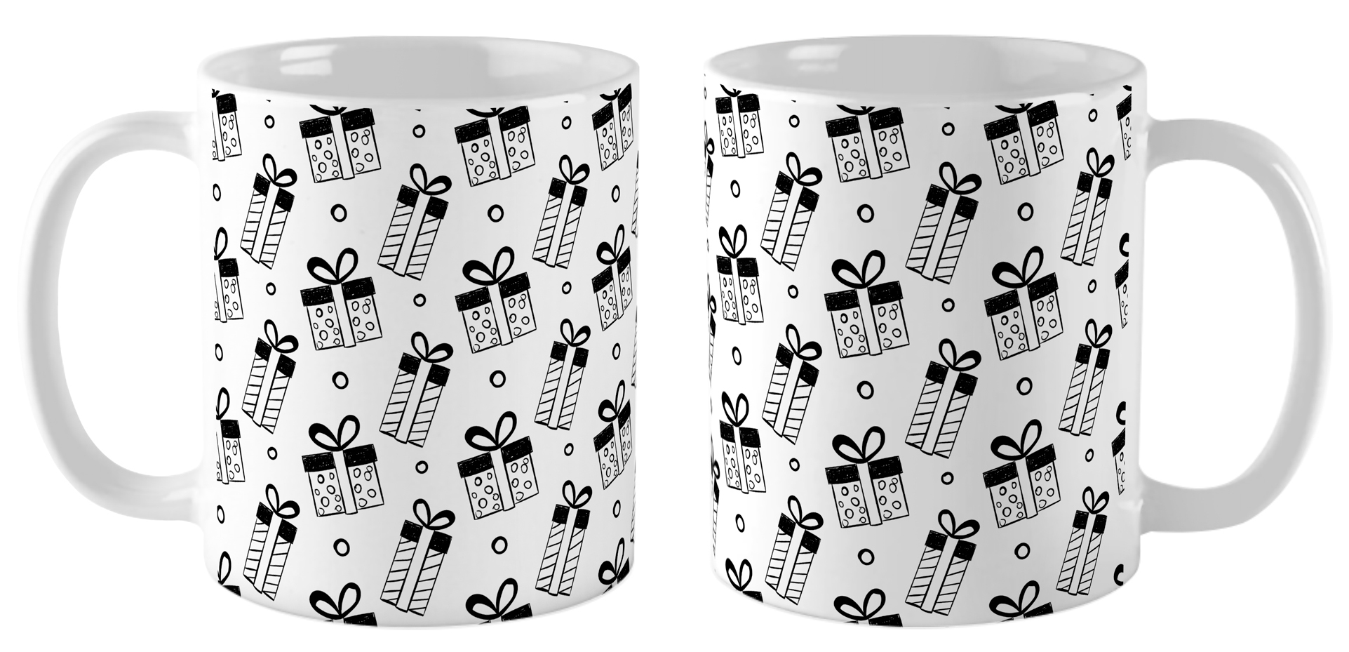 Кружка «Подарки» — это стильный аксессуар для вашего стола! Изготовленная из качественной белой керамики, она украшена монохромным паттерном с изображением подарков. Удобная классическая форма и гладкая поверхность обеспечивают комфортное использование, а стойкость печати гарантирует сохранение четкого рисунка после многократного мытья. Практичный вариант для ежедневных напитков.