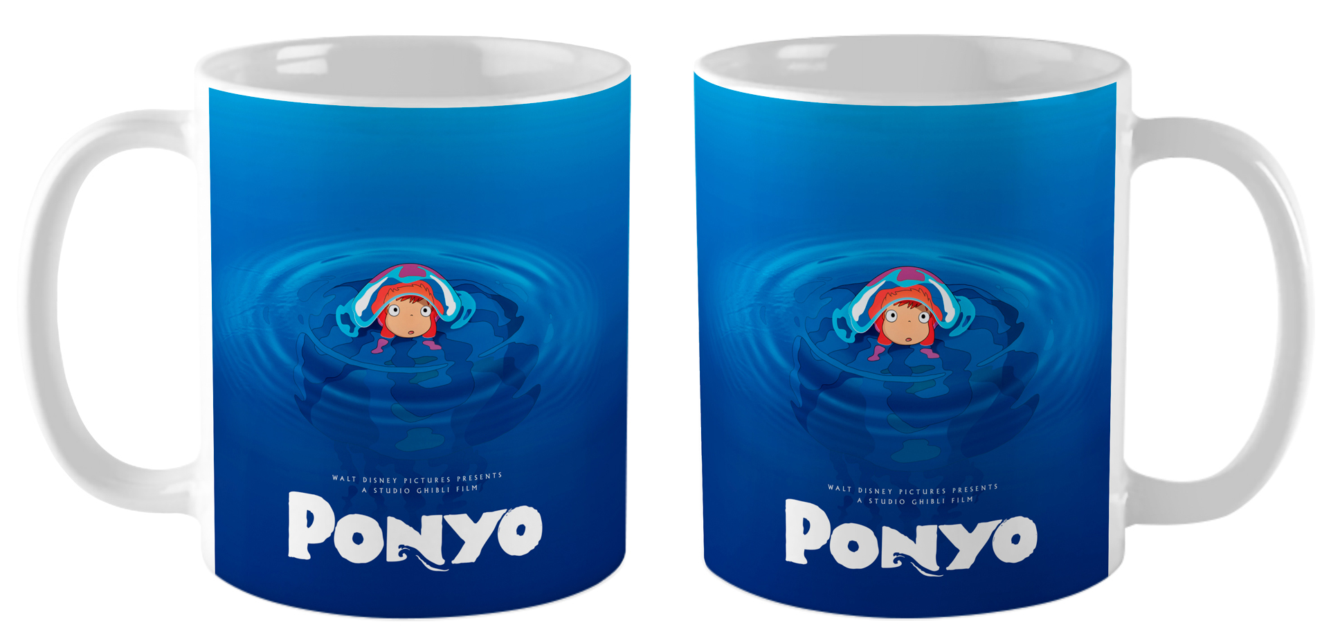 Кружка с артом из «Gake no Ue no Ponyo». На берегу моря мальчик Сооске однажды находит маленькую рыбку, нуждающуюся в помощи. Она – дочь морской богини и живет недалеко от главного героя. Дети начинают дружить и Поньо влюбляется в мальчика. Теперь она хочет во что бы то ни стало стать человеком, но возможно ли это?