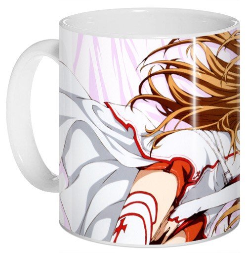 Кружка с Асуной, главной героиней «Sword Art Online». Девушка, попавшая в игру случайно, быстро становится одной из лучших. Она выделяется своей неимоверной скоростью, с которой расправляется с врагами. Героиня становится конкуренткой Кирито, но вскоре объединяется с ним и его командой. Вместе герои начинают свой квест к финальному боссу.