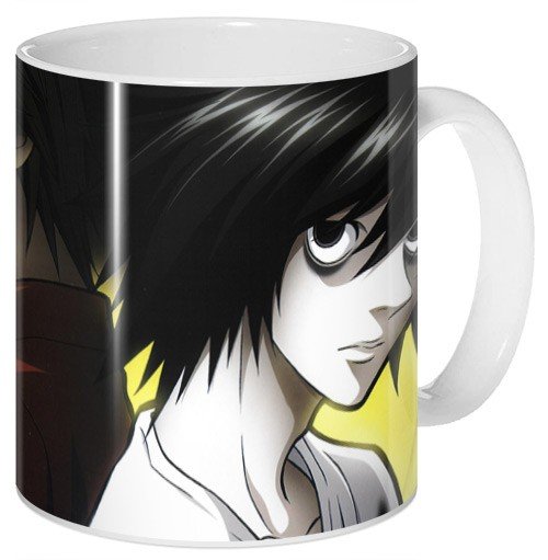 Аниме кружка с главными героями «Death Note». На ней изображена троица протагонистов: Лайт – школьник, заполучивший Тетрадь Смерти, Миса – вторая обладательница тетради, и гениальный детектив L, который долгое время скрывал свое настоящее лицо. Герои этой истории хорошо известны всем отаку, поэтому кружка с ними станет прекрасным подарком для любого из них.