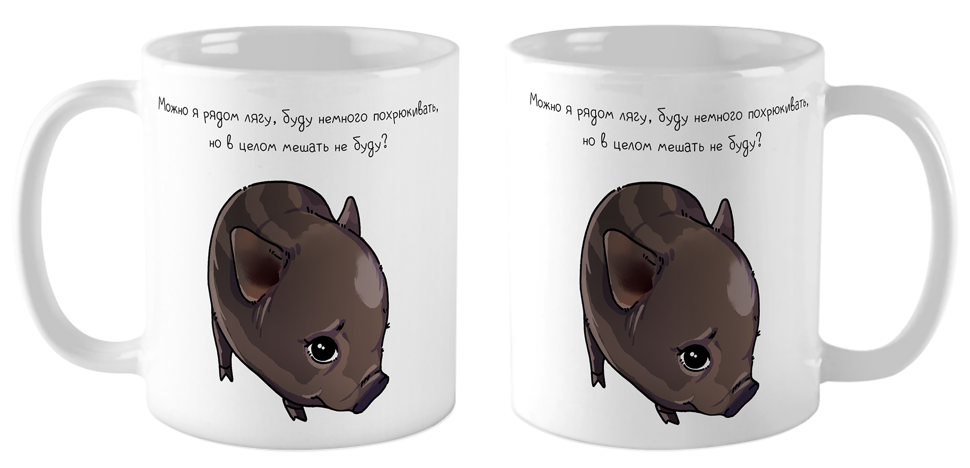 Кружка «Кабан / Можно я рядом лягу, но мешать не буду?» — уютный и трогательный аксессуар с лёгким юмором и душевным настроением; на поверхности изображён милый кабанчик с немного застенчивым и добрым выражением, который визуально усиливает смысл надписи и создаёт ощущение тепла и заботы; минималистичная иллюстрация с мягкими линиями делает дизайн лаконичным и приятным для восприятия, а светлый фон подчёркивает персонажа и текст; кружка отлично подойдёт для повседневного использования, поднимет настроение и станет отличным подарком для близкого человека или друга, ценящего милые и искренние вещи.