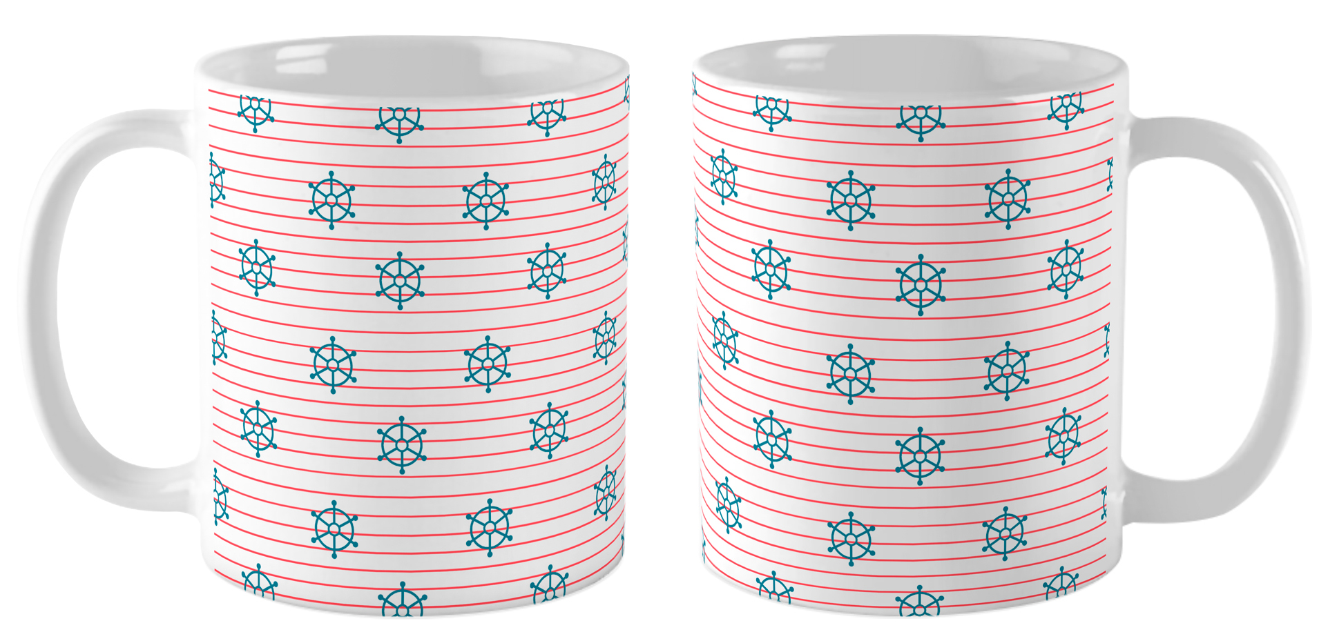 Кружка «Штурвалы» — это стильный аксессуар для поклонников морской эстетики! Изготовленная из качественной белой керамики, она украшена тематическим паттерном с изображением штурвалов. Удобная классическая форма и гладкая поверхность обеспечивают комфортное использование, а стойкость печати гарантирует сохранение четкого рисунка после многократного мытья. Идеальный выбор для повседневных напитков.