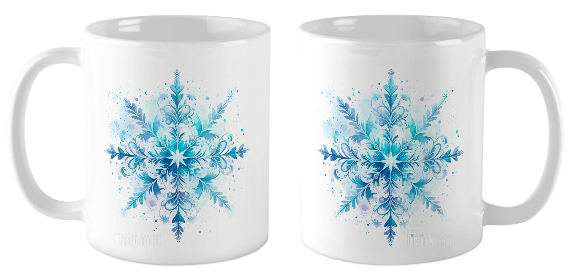 Кружка Снежинка голубая / Акварель