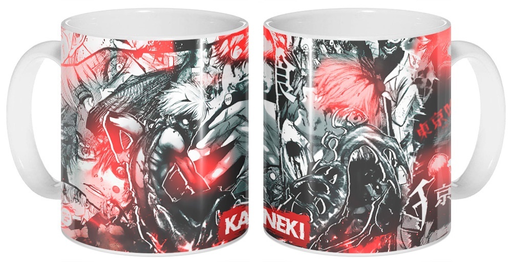Кружка с Кэном и его альтер-это из сериала «Tokyo Ghoul». Герою всего 18 лет и он был простым мечтательным студентом. Внезапно в его жизнь врываются неожиданные события. Молодой человек попадает в больницу, где ему пересаживают органы гуля. Так Кэн становится наполовину монстром, который должен питаться человеческой плотью. Теперь в его душе идет постоянная борьба добра со злом.