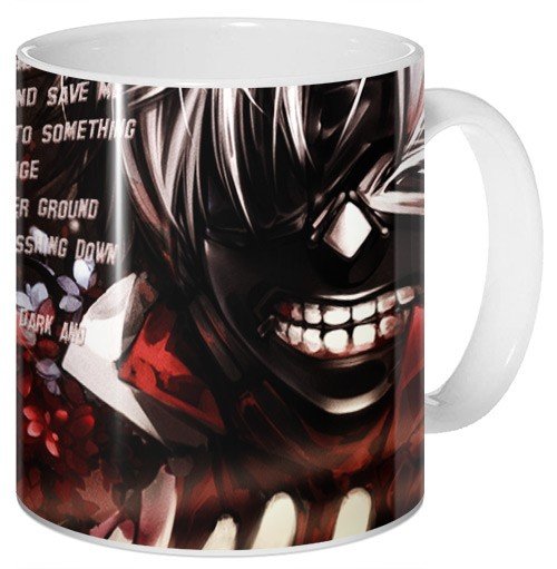 Кружка с Кэном и его альтер-это из сериала «Tokyo Ghoul». Герою всего 18 лет и он был простым мечтательным студентом. Внезапно в его жизнь врываются неожиданные события. Молодой человек попадает в больницу, где ему пересаживают органы гуля. Так Кэн становится наполовину монстром, который должен питаться человеческой плотью. Теперь в его душе идет постоянная борьба добра со злом.