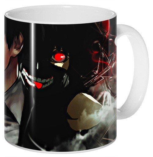 Кружка с Кэном и его альтер-это из сериала «Tokyo Ghoul». Герою всего 18 лет и он был простым мечтательным студентом. Внезапно в его жизнь врываются неожиданные события. Молодой человек попадает в больницу, где ему пересаживают органы гуля. Так Кэн становится наполовину монстром, который должен питаться человеческой плотью. Теперь в его душе идет постоянная борьба добра со злом.