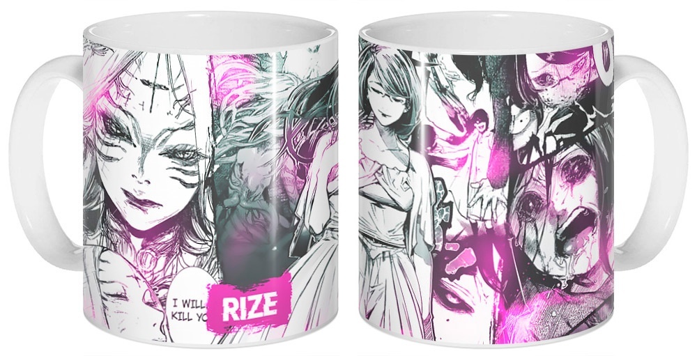 "Кружка Tokyo Ghoul - Rize (manga ver.)" - это керамическая кружка, которая является продуктом мерчендайзинга по манге и аниме-сериалу Токийский монстр. Она изображает персонажа по имени Ризе Камиширо (Rize Kamishiro) в ее манга-версии.