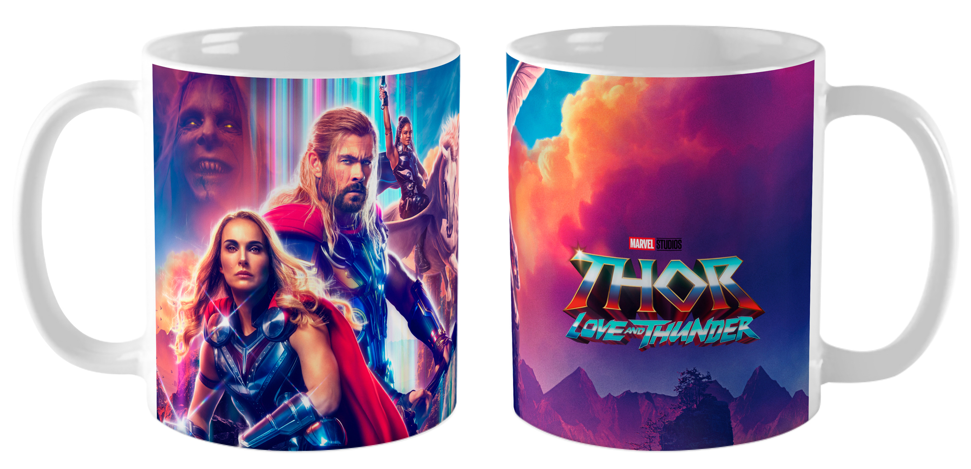 Кружка керамическая белая объёмом 330 мл с изображением главных персонажей фильма «Тор: Любовь и гром». На кружке представлены динамичные и яркие портреты Тора, Джейн Фостер в образе Бога Грома и других ключевых героев на фоне грозового неба и молний. Дизайн передаёт эпическую атмосферу, силу и эмоциональную глубину фильма, подчёркивая героизм и командный дух персонажей. Отличный подарок для поклонников Marvel и ценителей качественного кинематографического мерча.