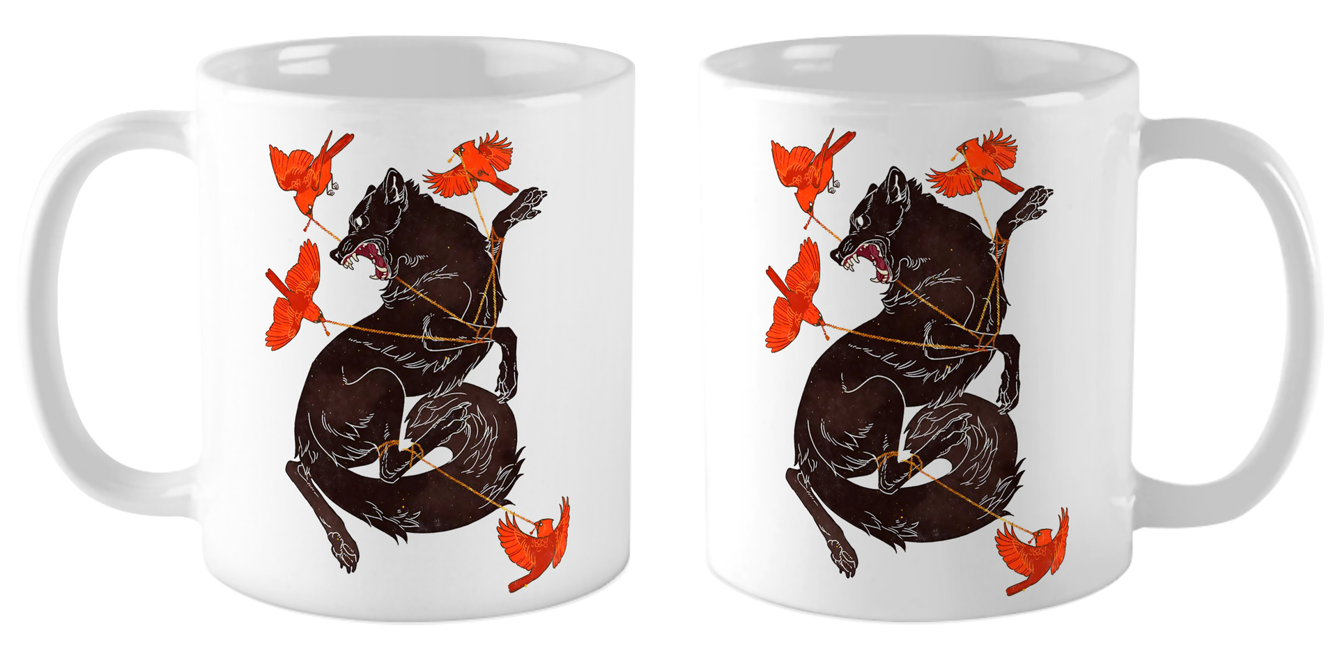 Кружка Волк и красные кардиналы / Арт №6