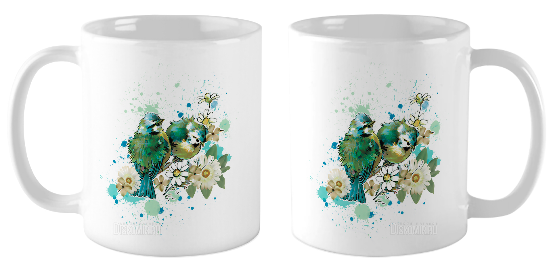 Кружка Воробьи в цветах / Акварель