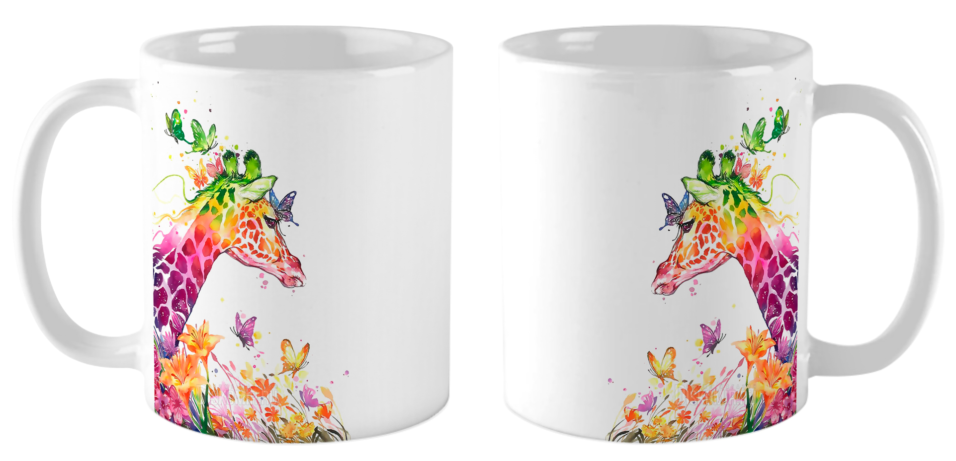 Кружка Жираф с бабочками / Акварель
