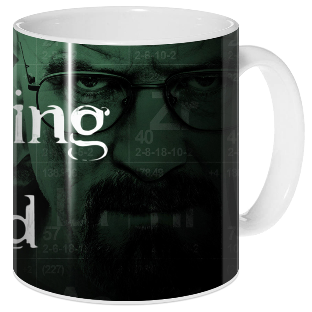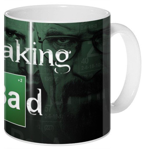 Кружка с рисунком из известнейшего криминального сериала «Breaking Bad». Это рассказ о непростой жизни школьного учителя, который узнает о своей неизлечимой болезни. Объединившись со своим бывшим учеником, он становится основателем новой подпольной империи, занимающейся изготовлением нелегальных веществ, но с самого начала герой понимает, что она не может существовать вечно.