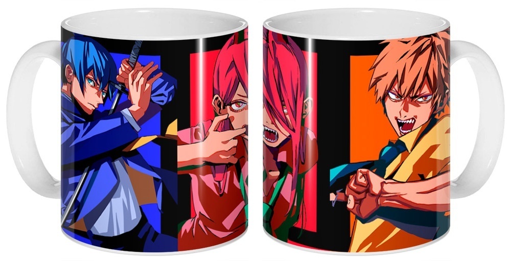 Керамическая кружка по аниме Человек Бензопила с персонажами Дэндзи, Аки и Пауэр - универсальный подарок, который можно преподнести на любое событие. Стойкий и яркий рисунок не стирается со временем и кружка прослужит вам долгое время, принося радость и хорошее настроение
