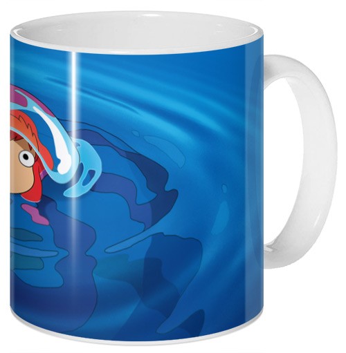Кружка с артом из «Gake no Ue no Ponyo». На берегу моря мальчик Сооске однажды находит маленькую рыбку, нуждающуюся в помощи. Она – дочь морской богини и живет недалеко от главного героя. Дети начинают дружить и Поньо влюбляется в мальчика. Теперь она хочет во что бы то ни стало стать человеком, но возможно ли это?