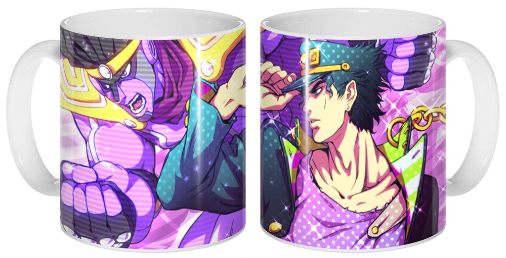 Керамическая кружка Джотаро и Джоскэ из аниме JoJo's Bizarre Adventure - универсальный подарок, который можно преподнести на любое событие. Каждая наша кружка заряжена позитивом. Стойкий и яркий рисунок не стирается со временем и кружка прослужит вам долгое время, принося радость и хорошее настроение