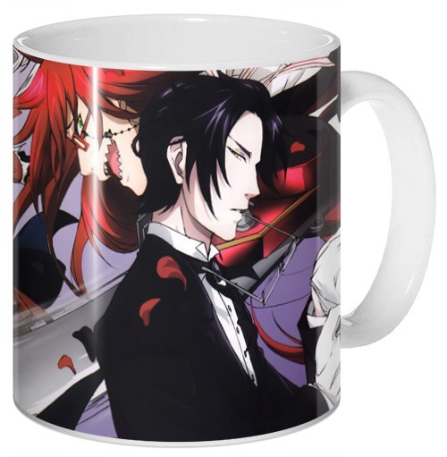 Стильная и яркая кружка из прочной керамики с изображением сценок из аниме Kuroshitsuji непременно привлечет внимание своим оригинальным дизайном. Изображение нанесено по всем сторонам кружки, при этом оно не смывается, не портится от горячей воды или долгого использования. Эта кружка станет твоим верным другом или отличным подарком другому анимешнику.
