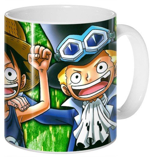 Кружка с героями сенэна «One Piece». Сюжет этого сериала вращается вокруг Луффи – паренька, решившего во что бы то ни стало стать королем пиратов. Герой отправляется в путешествие по морям, хотя из-за съеденного дьявольского фрукта, морская вода для него губительна. Луффи встречает других героев и основывает команду, которой суждено стать одной из самых известным в мире.