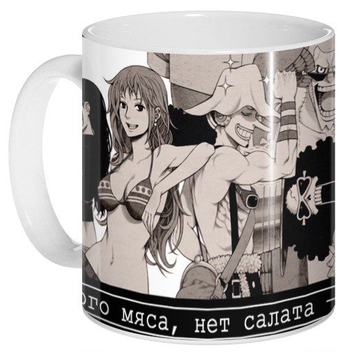 Интересная кружка по мотивам манги One Piece. На первом плане мы можем видеть главного героя – Манки Д. Луффи, а также его верного попутчика, лучшего фехтовальщика во всем мире – Ророноа Зоро. Оба этих героя являются одними из сильнейших членов пиратской команды Соломенная Шляпа и, пожалуй, одними из самых сильных героев во всей манге. Но на их пути стоит множество трудностей, так что жизнь у них не из простых.