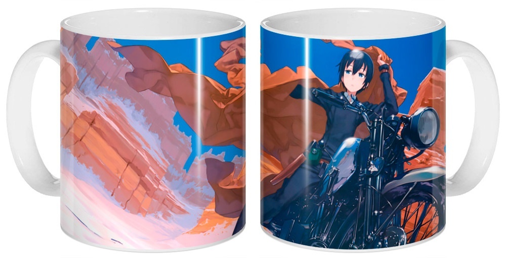 Керамическая кружка из аниме Путешествие Кино: Прекрасный мир - универсальный подарок, который можно преподнести на любое событие. Каждая наша кружка заряжена позитивом. Стойкий и яркий рисунок не стирается со временем и кружка прослужит вам долгое время, принося радость и хорошее настроение