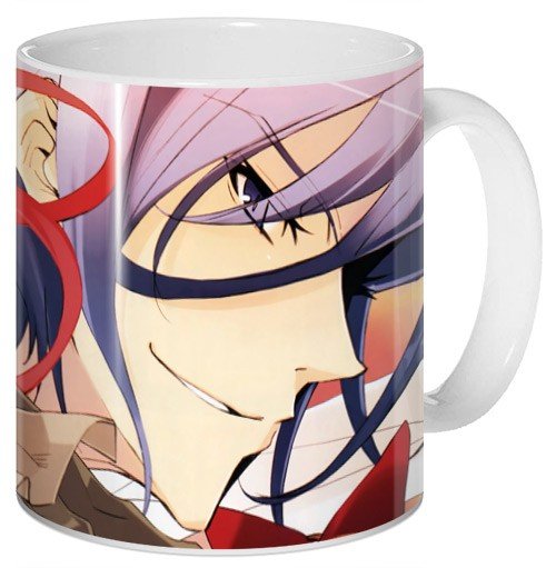Кружка с персонажами «Shakugan no Shana». Протагонист, обычный школьник Сакаи Юдзи, возвращался домой после учебы. Внезапно происходит что-то необъяснимое: все вокруг становится багрово-красным и появляется страшный монстр, нападающий на застывших людей. Герой и сам оказывается на волоске от смерти, но тут вмешивается прекрасная девушка и спасает героя. С этого начинается его новая, полная опасностей, жизнь.