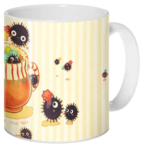 Кружка с сусуватари – забавными героями аниме «Spirited Away». Эти «духи сажи» появляются во многих работах студии Гибли. Они живут в пыльных заброшенных местах и отличаются своим любопытством. В «Унесенных призраками» они работают, помогая дедушке Камадзи греть воду для огромной бани, в которую попадает главная героиня истории.