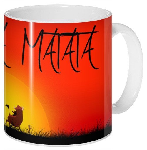 Кружка с героями «The Lion King». На ней нанесен момент из детства Симбы, когда он только познакомился со своими новыми друзьями – Тимоном и Пумбой. Он, одолеваемый угрызениями совести, долгое время провел с сурикатом и бородавочником, скрываясь от родного прайда. Но не за горами то время, когда герой вернется и вступит в законные права наследника.