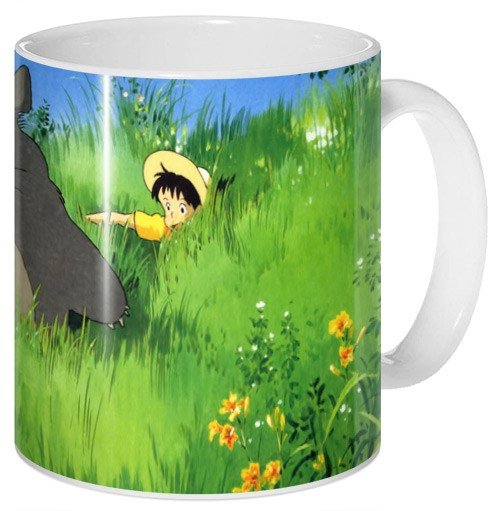 Кружка, на которой изображен Тоторо и главные героини аниме «Tonari no Totoro». Герои расположились на траве и наслаждаются теплым летним днем. Девочки, переехавшие сюда из города, сначала настороженно восприняли изменение обстановки. Но жизнь вблизи природы вскоре им очень понравилась. Тем более, героини познакомились со многими необычными и добрыми жители леса.