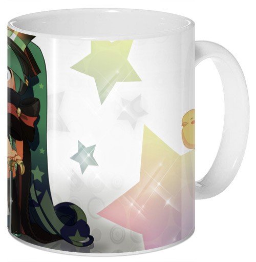 Кружка с Хатсунэ Мику, героиней «Vocaloid». На ней эта известная девушка изображена в забавном чиби-стиле. Мику «родилась» вместе с первой версией программы, на коробке которой была изображена. С тех самых пор она стала настоящей поп-звездой, которую любят миллионы фанатов по всему миру. Девушка продолжает радовать их своими хитами и выступать с «живыми» концертами.