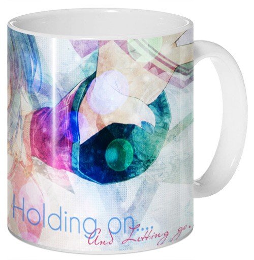 Кружка с артом из «Vocaloid». На нем изображена девушка, хорошо известная всем отаку – Мику. Она появилась еще с самой первой версией программы, но до сих является одним из самых популярных «Вокалоидов». Песни героини тои дело звучат в аниме-опенингах, а сама она неустанно гастролирует, представляя фанатам свои новые хиты.