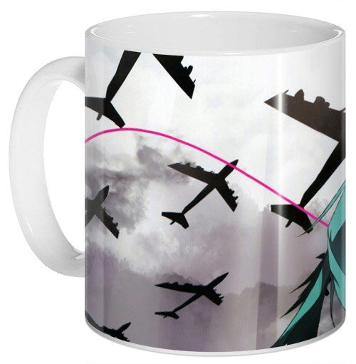 Кружка с Мику, персонажем серии «Vocaloid». Эта девушка стала первым официальным маскотом серии и до сих пор является самым популярным из них. Создатели героини продолжают работать над развитием ее образа, даря героине новые хиты и обновленные голограммы, с которыми она выступает на публике. Она, наверное, самый необычный персонаж на японской поп-сцене.