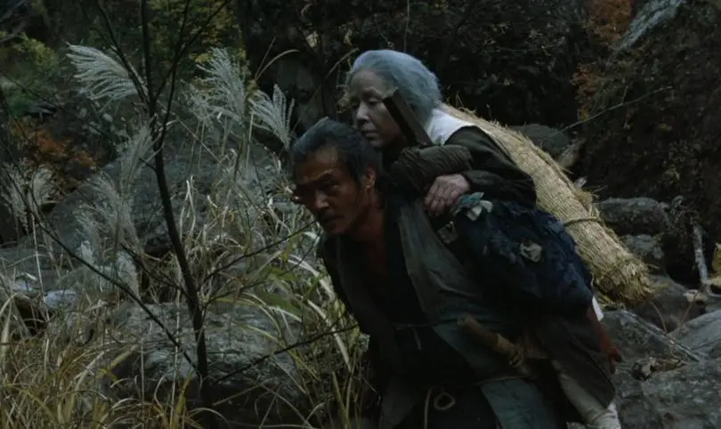 Действие происходит в XIX столетии в японской деревушке, пораженной голодом. Чтобы не умирать голодной смертью, жители ввели ритуал умерщвления бесполезных членов сообщества: новорожденных мальчиков просто убивали, а пожилых людей их собственные дети относили на вершину горы Нараяма и оставляли умирать. Орин (Сакамото) - женщина 69 лет должна умереть. Ее сын (Огата) не хочет выполнить ритуал, но того требует мать, верная традиции. Найдя жен своим детям, она начинает последний подъем на вершину, привязанной к спине сына. Фильм преднамеренно снят предельно реалистично по сравнению с подобным сну оригиналом.