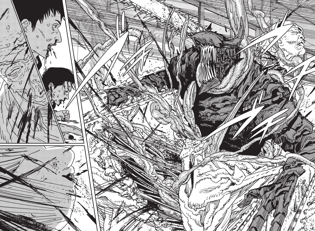 Узнав о судьбе Наюты, Дэндзи теряет самообладание и превращается в черного Человека-Бензопилу — могущественное и неистовое чудовище. В бой с ним вступают как сотрудники Бюро общественной безопасности, так и Йор, но их усилия тщетны: в этом обличьи юноша невероятно силен. Кроме того, в ходе ожесточенной схватки появляется демон-старение – воплощение первородного страха человечества. И у этого существа имеются свои планы на Дэндзи...