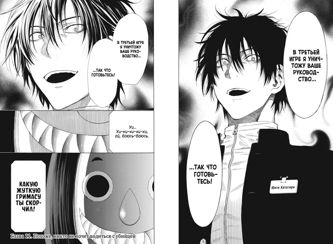 В третьем раунде «Игры друзей» обстановка накаляется. Чтобы противостоять гению из группы «К», Юити Катагири вынужден прибегнуть к крайним мерам. С тех пор, как в его команде появился перебежчик Хякутаро Онигавару, Юити не может действовать согласно своему плану, ведь он должен сторожить Онигавару. Но если Юити и Тэндзи не выиграют, друзьям не удастся выяснить, кто и зачем организовал эту жестокую игру. Тем временем Савараги, Сибэ и Кокороги ненадолго возвращаются к привычной жизни. Правда, и там их поджидают неприятности…