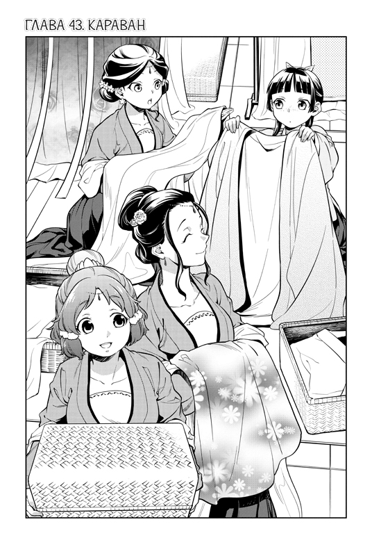 В книгу вошли 3-й и 4-й тома оригинальной манги, 13 глав: «Умозаключения Маомао», «Зачем дарят шпильки», «Возвращение в родную гавань», «Соломинка», «Недоразумение», «Вино», «Поручение для Маомао», «Мед» (1-2), «Наложница Адо», «Недопонимание», «Евнух и девушка для утех», «Собирая узелок». Книга соответствует второй половине 1-го тома оригинального ранобэ.
