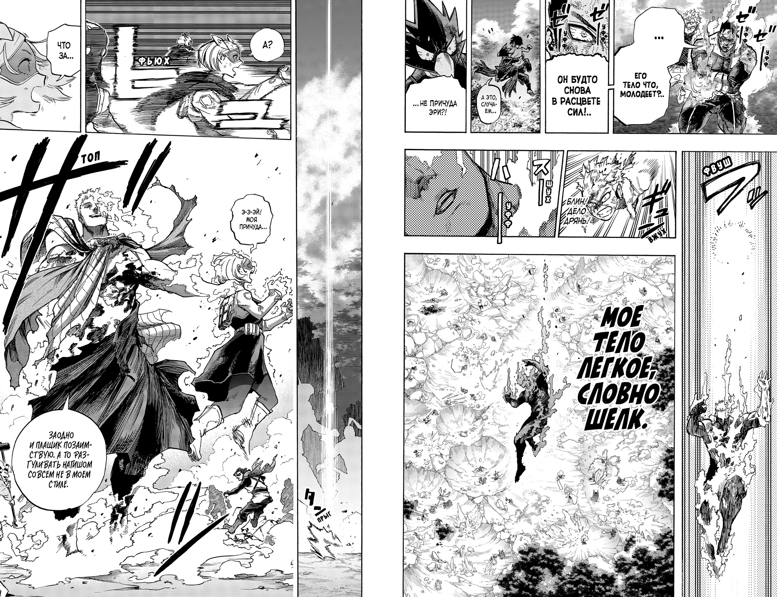 До решающей схватки с могущественным Всеми За Одного и его приспешниками остались считанные дни. Обе стороны затаились с целью перегруппироваться и выработать план действий. Профи продумывают каждый шаг, но неизвестно, сколько вражеских шпионов затаилось в стенах Юэй. К счастью, на этот раз исход битвы зависит не только от топовых героев и Мидории. Всем ученикам геройской академии предстоит сыграть в сражении свою особенную роль – Тодороки, Бакуго, Иде и даже Юго Аояме. Вы еще не раз услышите их имена. Жаль только, любой даже самый продуманный план имеет свойство сильно изменяться, когда дело доходит до реальной встречи с противником…