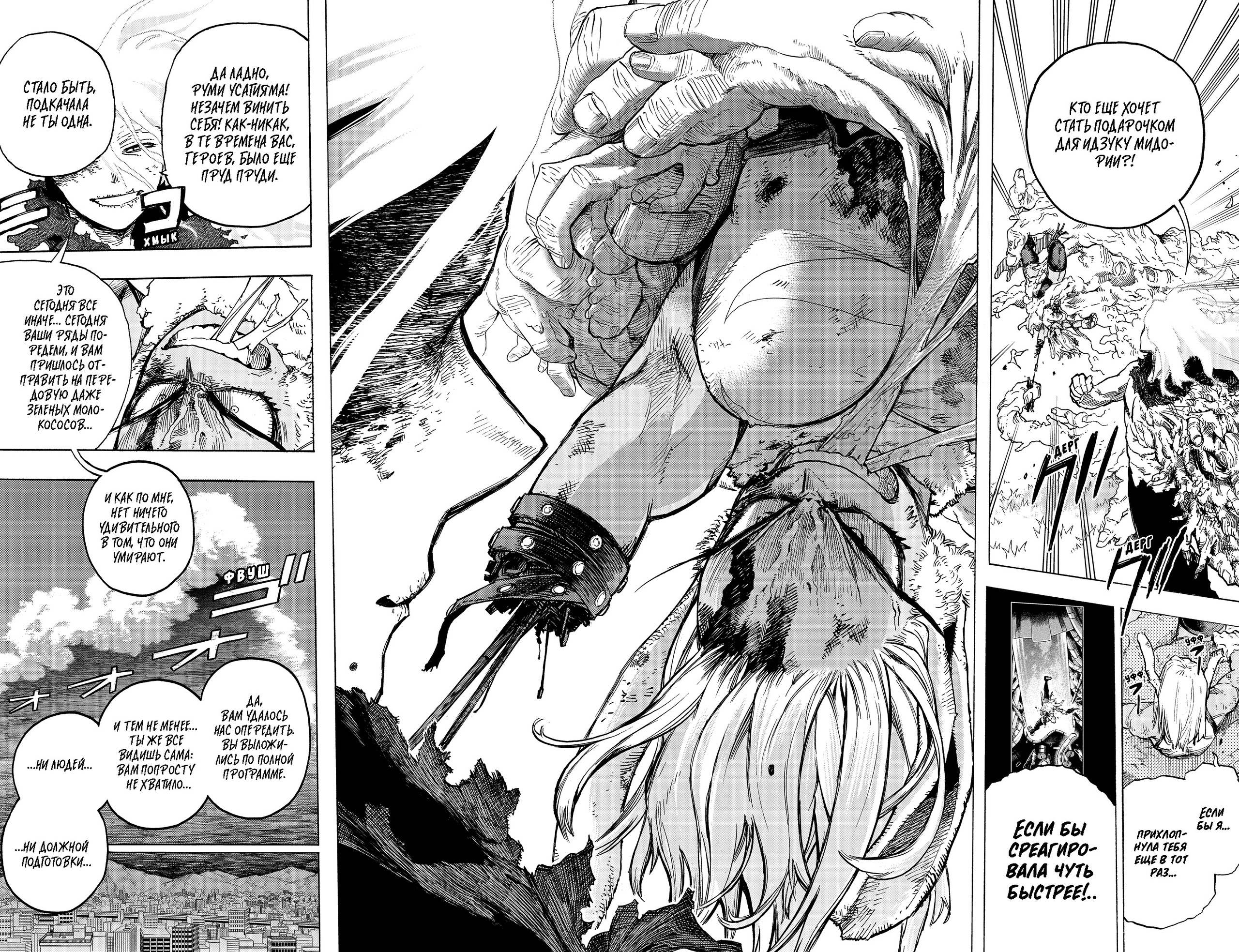 Вовремя появившийся на поле боя Джинсист и выложившийся на тысячу процентов Идзуку смогли всё же переломить ход противостояния героев и злодеев. Томура Сигараки отступил, но слово, выпущенное в мир Даби, изменило если не всё, то очень многое. Светлые идеалы героев, защищающих простых людей, оказались отравлены ядовитыми истинами.