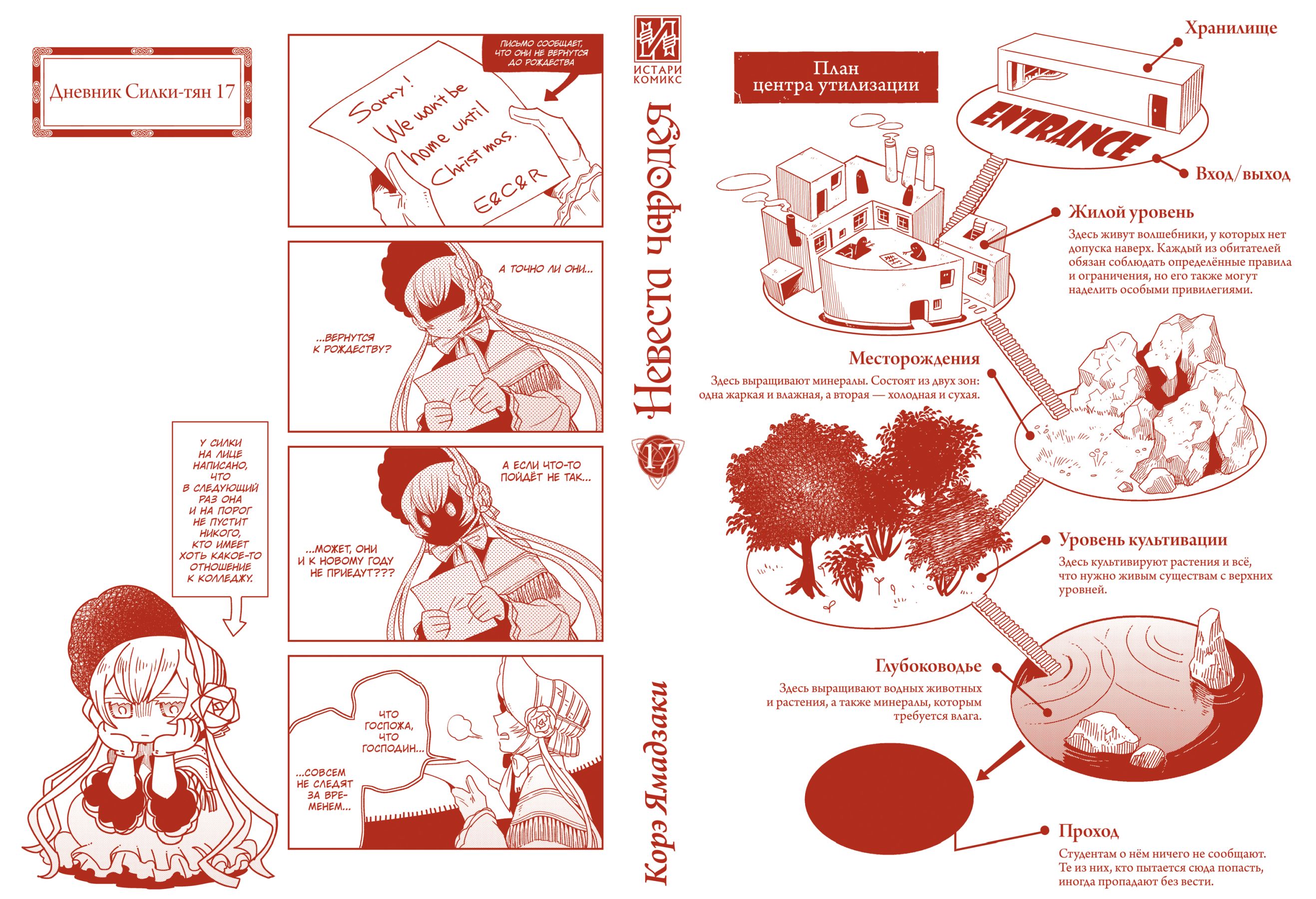 Манга Невеста чародея / Mahou Tsukai no Yome: Hoshi Matsu Hito. Том 15 продолжает захватываюшую историю. Происшествие в центре утилизации обнажило множество секретов, и всё это не могло не сказаться на Тисэ и её однокурсниках. Несколько дней спустя после странных событий, которые потрясли колледж, студенты все еще находились в состоянии шока и недоумения. Они обсуждали произошедшее днем и ночью, пытаясь разгадать тайну того, что происходило в таинственном учреждении утилизации.