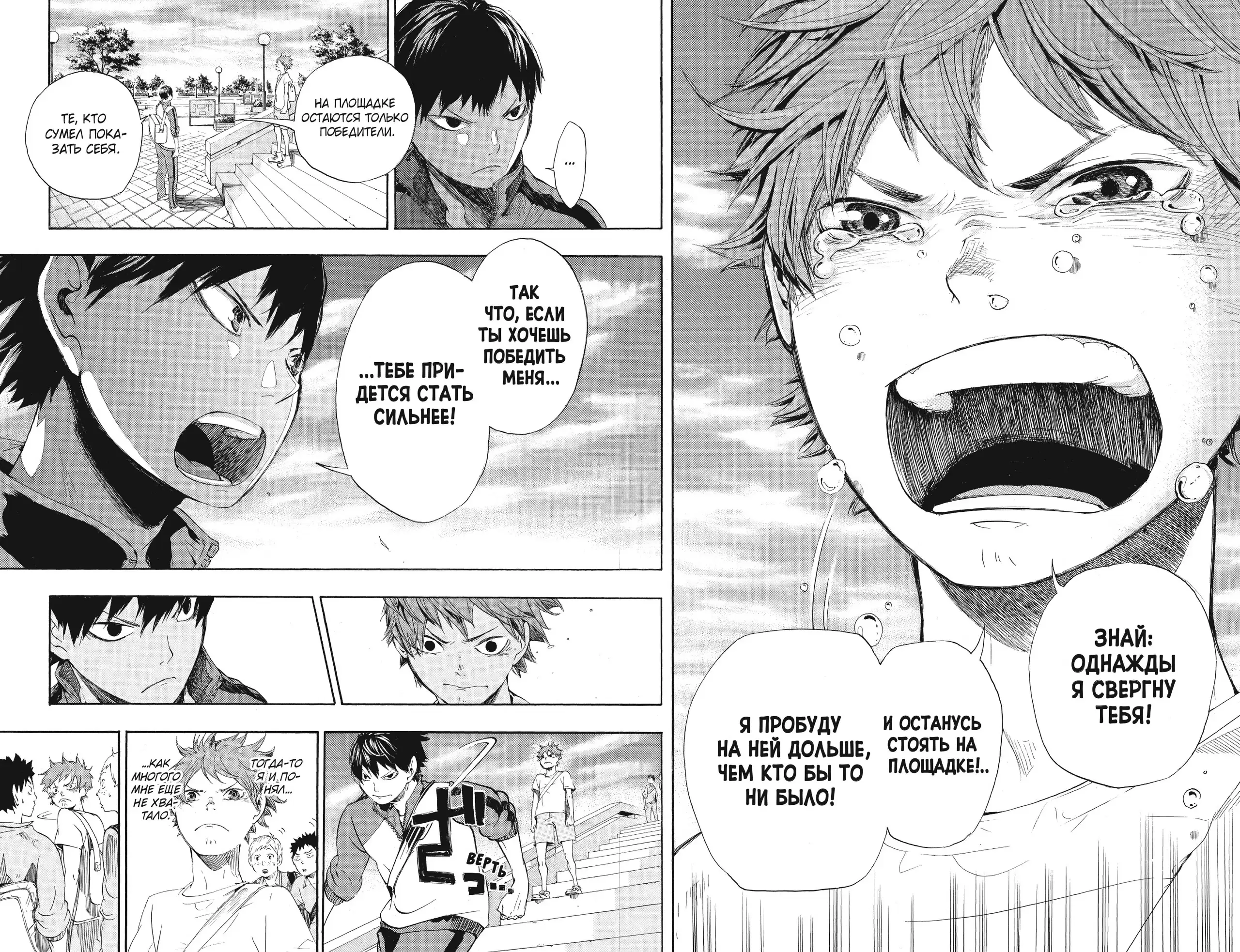 Невысокий юноша Сёё Хината одержим волейболом и грезит о том, чтобы однажды попасть на чемпионат Японии. Но на первых же соревнованиях команда Хинаты проигрывает с разгромным счетом школе, за которую играет Тобио Кагэяма, гениальный связующий, известный как Король Площадки.