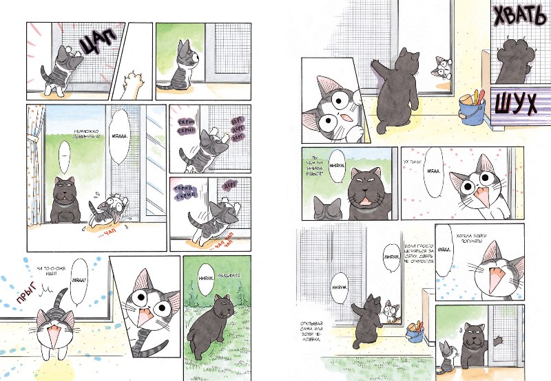 Этот том весь целиком состоит из непростых квестов и наполнен жизненным опытом, который Чи получит в результате освоения нехитрых, но крайне важных для жизни лайфхаков. Чи пришлось привыкать к защитному воротнику, в котором она, тем не менее, так же легко, как и без него, взбиралась по лестнице и спускалась и даже ела корм из миски. Куда тяжелее ей было смириться с временным запретом на прогулки: на улице её ждёт Коччи, а за порог никак не выйти. Когда наконец печать запрета на прогулки снята, папе пришла голову не лучшая идея – выгуливать Чи на шлейке. Как бы ни так! Не приняв во внимание прекрасные мечты папы, котёнок вырывается из ошейника и сбегает. Туда, где заждался Коччи. Друг Чи в это время уже потерял надежду снова увидеться с нею, поэтому даже принял за неё другую маленькую кошечку, прогуливавшуюся под присмотром мамы-кошки. Когда же наконец он встретился снова с Чи и понял, что она сбежала из дома, Коччи начинает учить её основам жизни на улице. Правило первое: умей добыть себе еду! Правило второе… Впрочем, не пора ли возвращаться домой? Хватит уже испытаний!