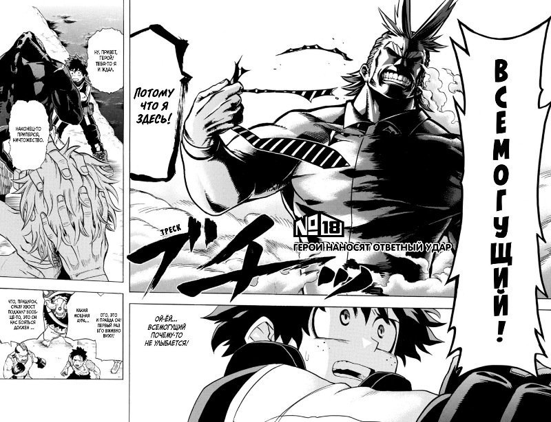 Манга, написанная и иллюстрированная Кохэем Хорикоси. Сюжет рассказывает об Идзуку Мидории, мальчике, родившемся без сверхспособностей в мире, где они стали обычным явлением, но всё же мечтающем стать героем. Он встречает Всемогущего - величайшего героя Японии и символ мира, который передаёт свою причуду Идзуку после признания его потенциала.