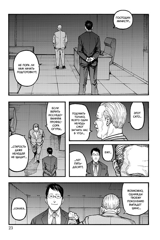 Тосаки пытается захватить в плен Сато с помощью отряда спецназа и новой стратегии - непрерывно убивая его, чтобы тот не успевал возродиться. Но Сато так просто не одолеть... Тема нелюдей продолжает все активнее муссироваться в СМИ. Кэй Нагаи, который прячется в сельской глуши, наконец осознает, что вечно убегать от проблем не выйдет, и обращается за помощью к Накано, недавно предлагавшему ему объединить силы.