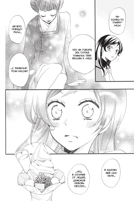 Уж сколько раз твердили миру — отношения между духом и человеком грозят обернуться множеством бед! И все же Болотная Химэмико, влюбившаяся в смертного по имени Котаро, верит, что им повезет. Нанами всячески поддерживает подругу и хочет помочь влюбленным, обвенчав их в храме Микагэ. Но, конечно, без неприятностей не обходится: к Химэмико сватается другой дух, Драконий Карп Нисики, который не терпит отказов...