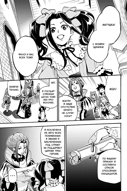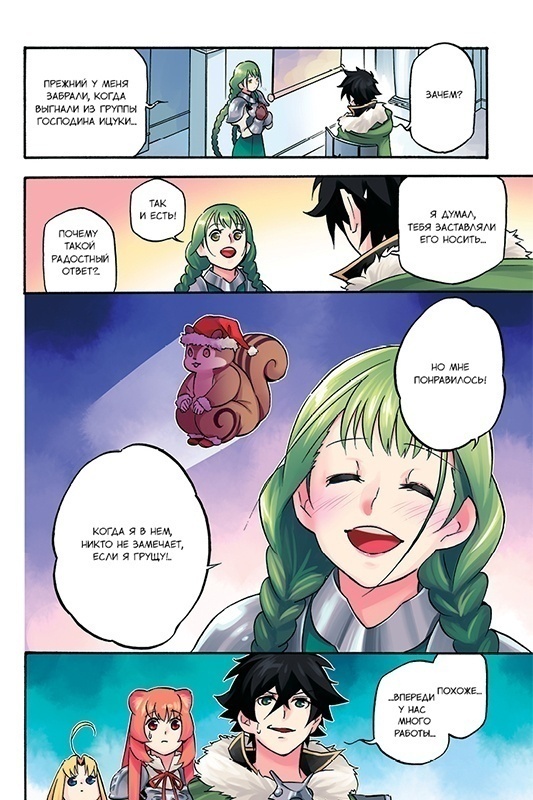Наофуми узнает, что Ларк и Терис, с которыми он успел подружиться — такие же герои, как он сам, но из другого мира. Значит, четверо святых героев — не единственные в своем роде?.. Чем дальше, тем больше появляется вопросов без ответа. Пока что ясно одно — надо без устали тренироваться, чтобы стать сильнее и суметь противостоять любой опасности. Может, дела пойдут на лад с появлением нового члена команды?..