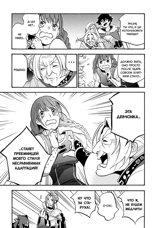 Вместе с Рисией в команду Наофуми приходит и еще один новый участник. Время тренироваться в поте лица! Благодаря королеве у них появляются преподаватели, которые смогут научить кое-чему полезному не только новичков, но и самого Наофуми: он постепенно осознает, что мастерство в настоящем бою отнюдь не всегда связано с прокачкой...