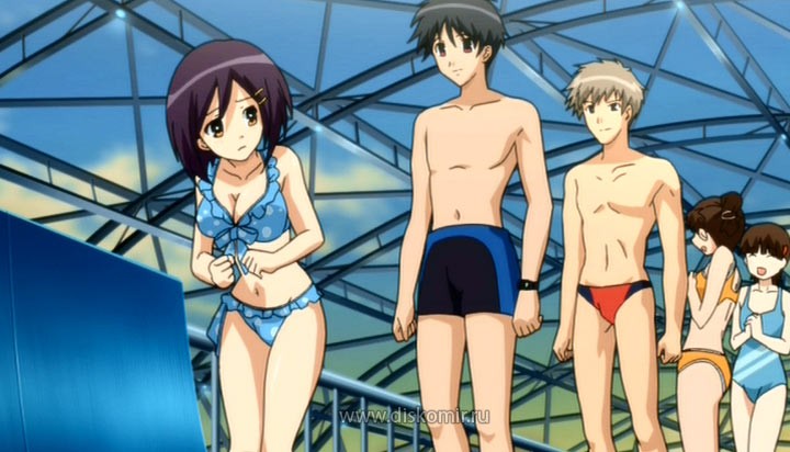 Три первые серии, стандарт гаремника, в течение которых персонажи знакомятся - и проходят по классическим местам общения - от школьных классов до неизменного аквапарка. Скучно, заезжено, малоинтересно.