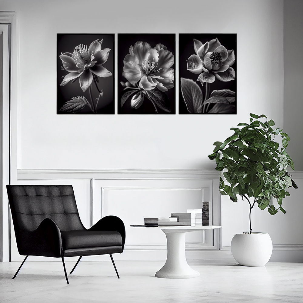 Набор постеров для интерьера - Black & White Flowers
